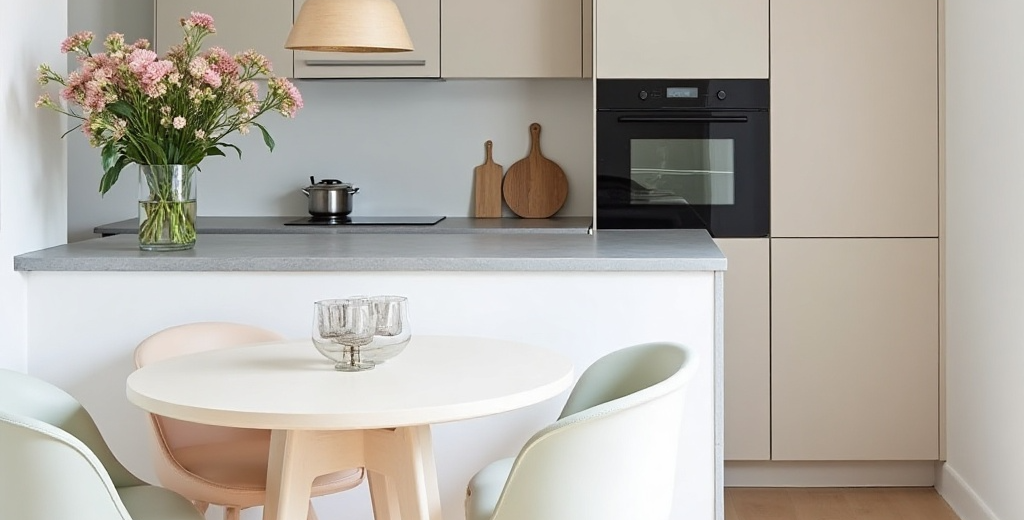 For this upscale kitchen-dining fusion, we used 3D rendering and interior modeling to solve a complex design puzzle: how to open up a tight layout without sacrificing storage or flow.