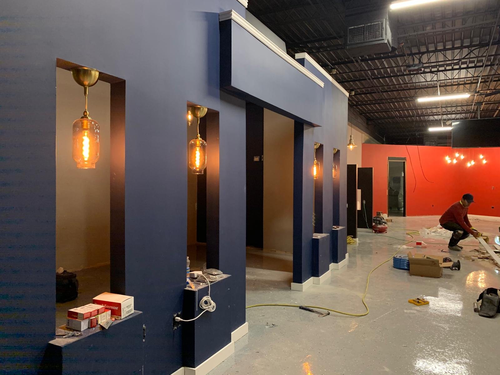- Electrical and Lighting Installation: Hanging lights and concealed LED strips were installed to create a warm and upscale ambiance.