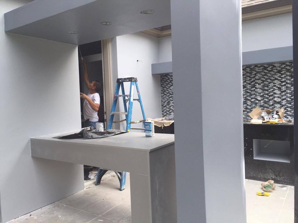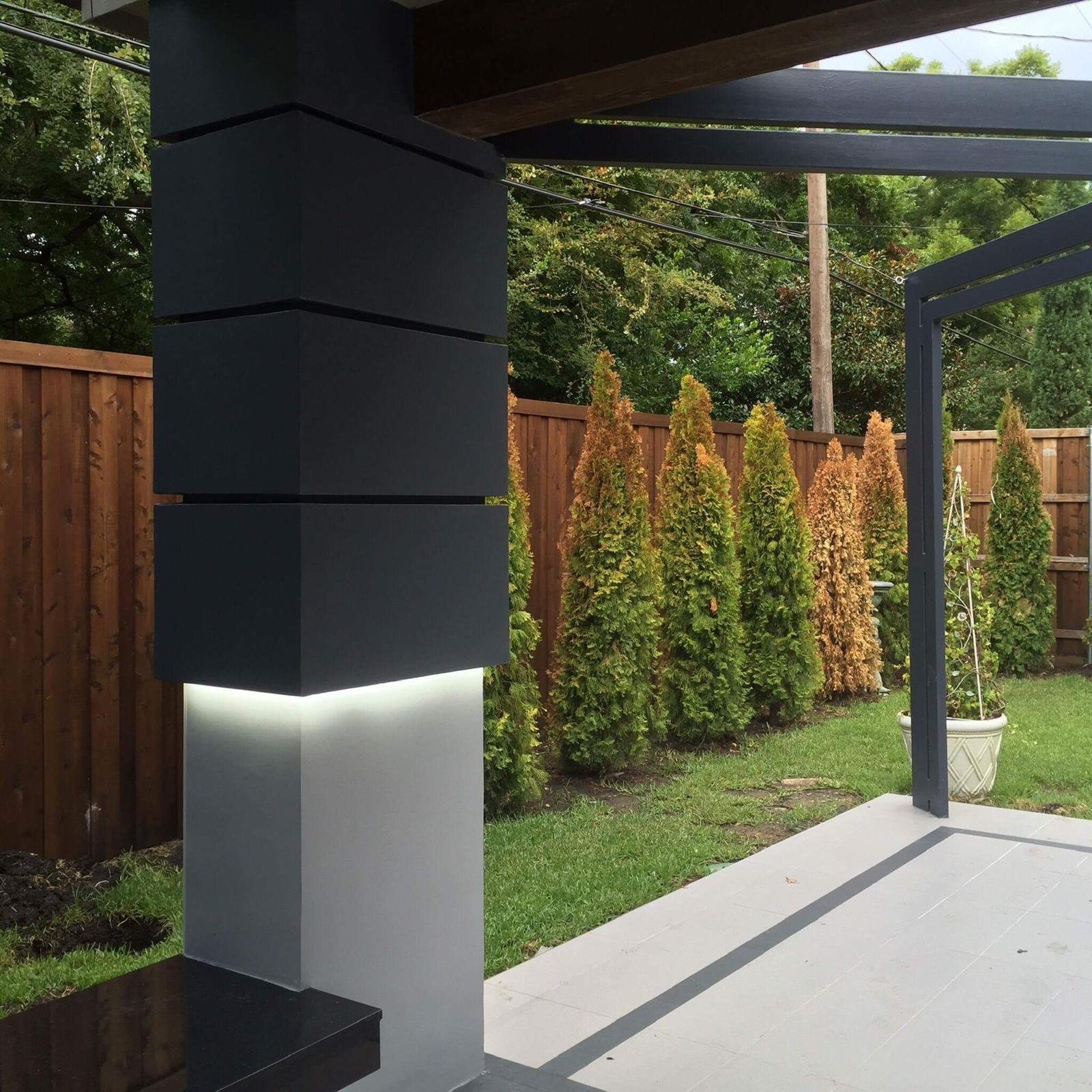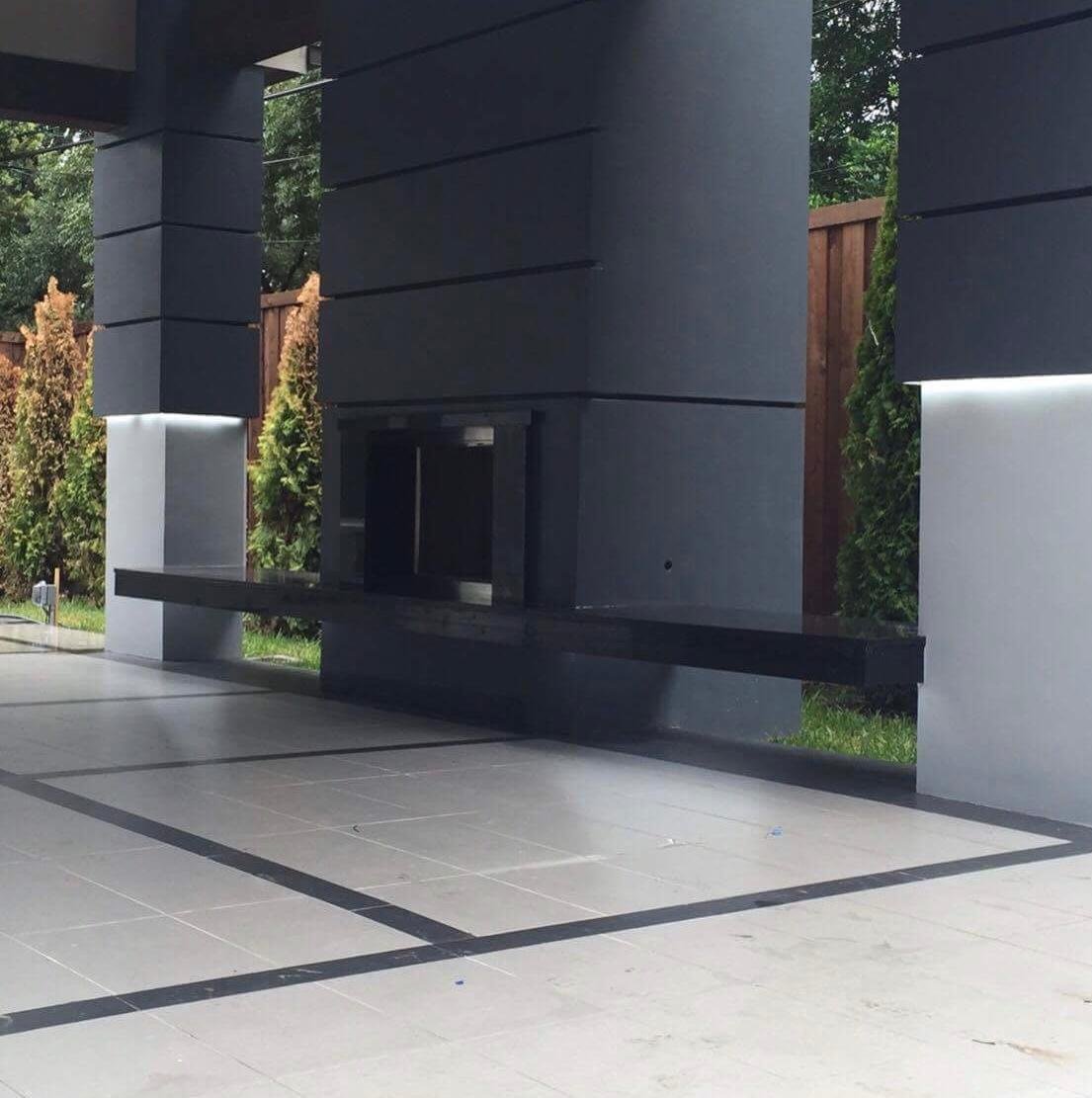 This custom-designed outdoor living space blends sleek modern architecture with functional luxury. Featuring a gourmet kitchen, a striking rain curtain, and sophisticated finishes, this project transforms the backyard into a resort-style retreat perfect for entertainment and relaxation.