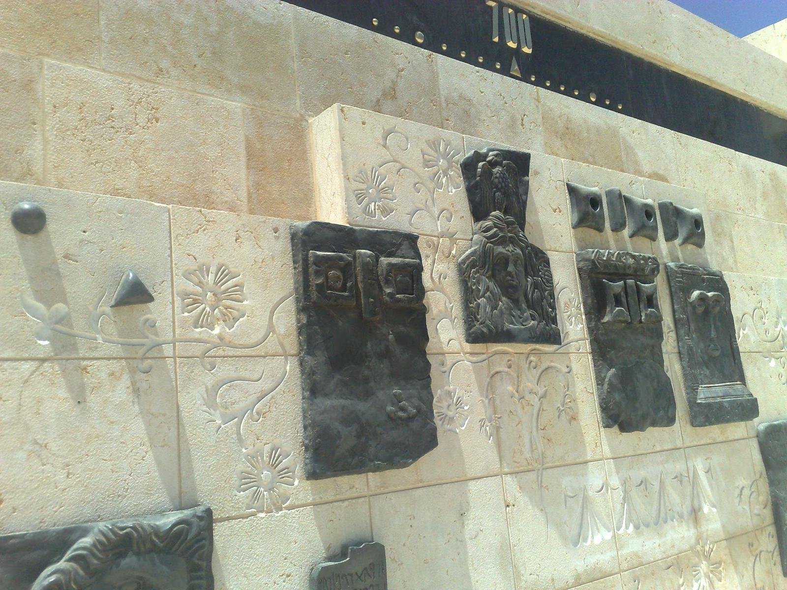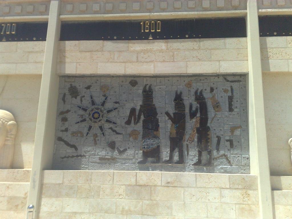 This monumental wall installation is a chronological visual narrative representing the evolution of human civilizations. Constructed from stone and adorned with intricate sculptures and reliefs, it features symbolic depictions of different historical eras—ranging from ancient Mesopotamian and Egyptian civilizations to classical antiquity and beyond. The timeline is marked with years and supported by detailed artwork, combining cultural motifs and artistic elements that reflect humanity’s journey through time.